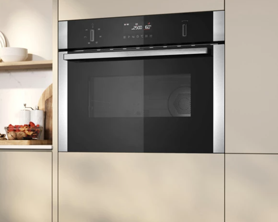 Looking for an oven that offers even more cooking options in a compact space? NEFF compact ovens with integral microwave combine multiple cooking methods into a single, space-saving appliance, making them perfect for modern kitchens.